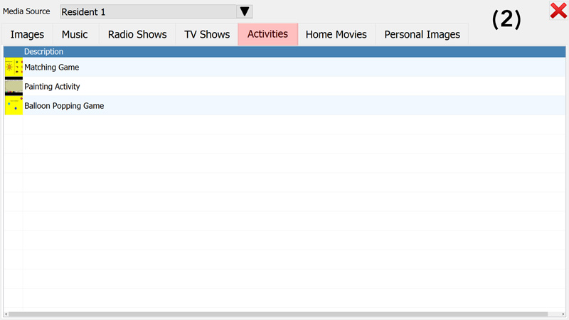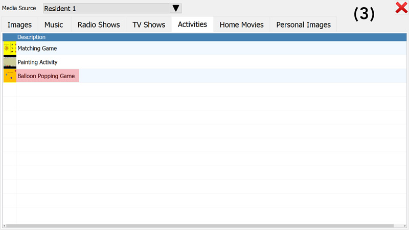 - select a title from the list to play music, view pictures, watch videos or (as shown in the example below) play an activity (Picture 3);