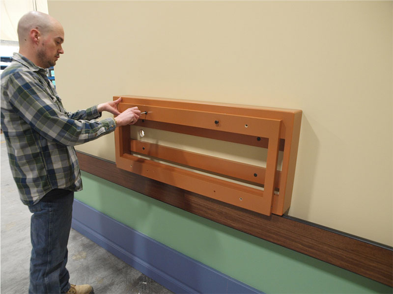 The purpose of the wall-mount frame is to allow ABBY to be mounted proud of hand-rails.